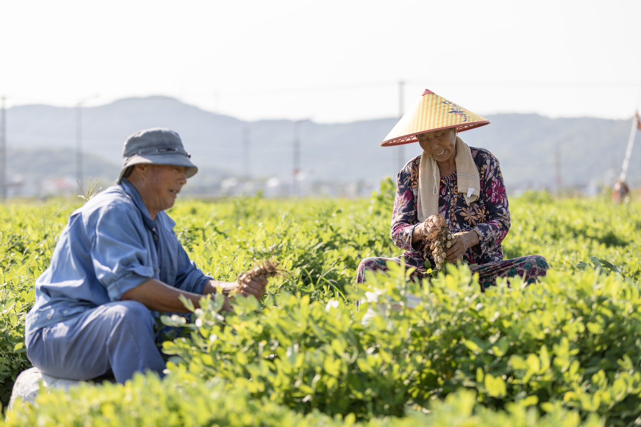 舟山岱山沙洋村,农户们采摘当地特有的沙地花生。2025年,“岱山沙洋花生”被认定为国家地理标志产品。拍友方佳摄