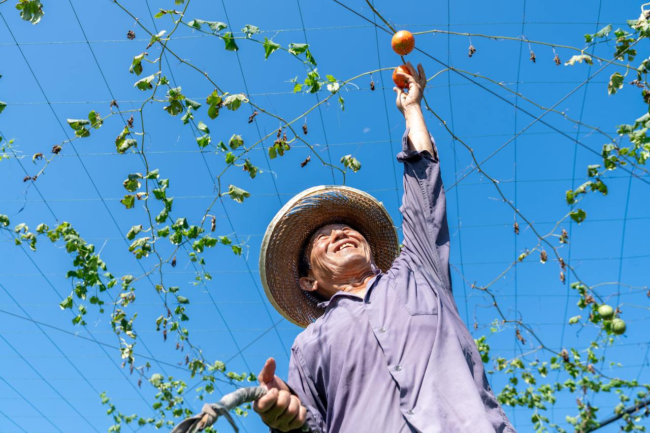 9月15日,浙江省湖州市长兴县煤山镇东风村,村民们采收的成熟吊瓜。拍友孙鑫琰摄