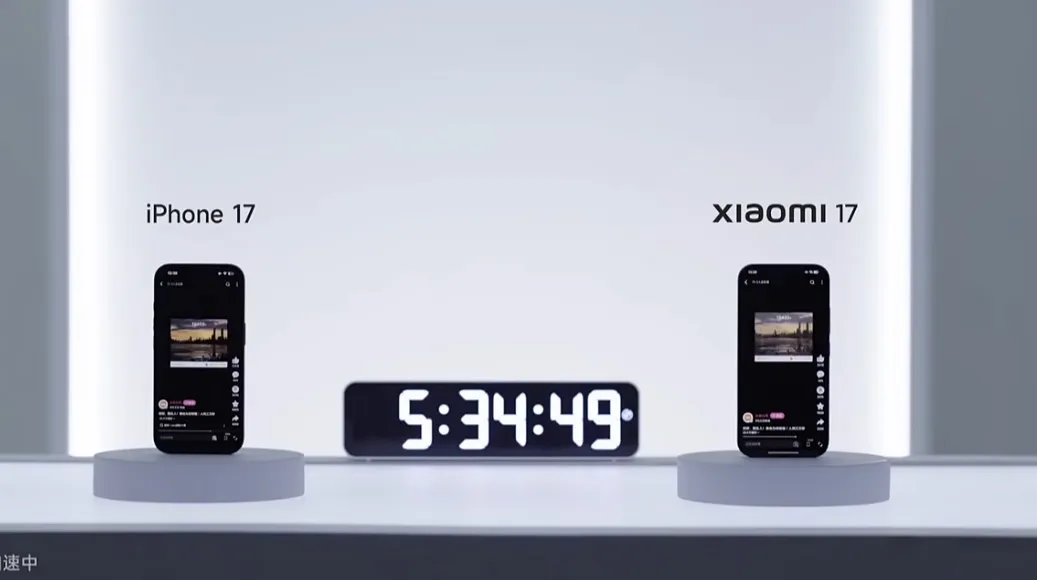 在下半场手机发布环节,雷军多次将小米最新的17系列对标日前苹果发布的iPhone17系列,包括外观、价格、续航时间、拍摄效果等,称“全面正式对标”。