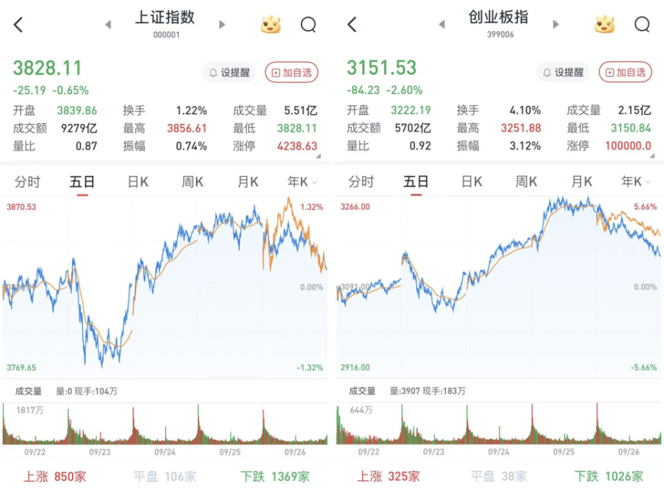 A股三大股指9月26日集体低开。早盘两市缩量弱势震荡,午后出现跌幅扩大的情况,节前市场做多情绪不佳。
