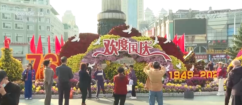 这一处鲜花景观就是由多种菊花为主体搭建的,一共使用了5万多株二十多个品种的鲜花,各种颜色相互搭配,形成了一种繁花似锦的效果。“十一”假期的第六天还是我国的传统节日中秋,在主题景观的两侧,还有用花卉搭建而成的月亮,上面还写着花好月圆的字样,这里也把花好月圆的美好祝福送给大家。