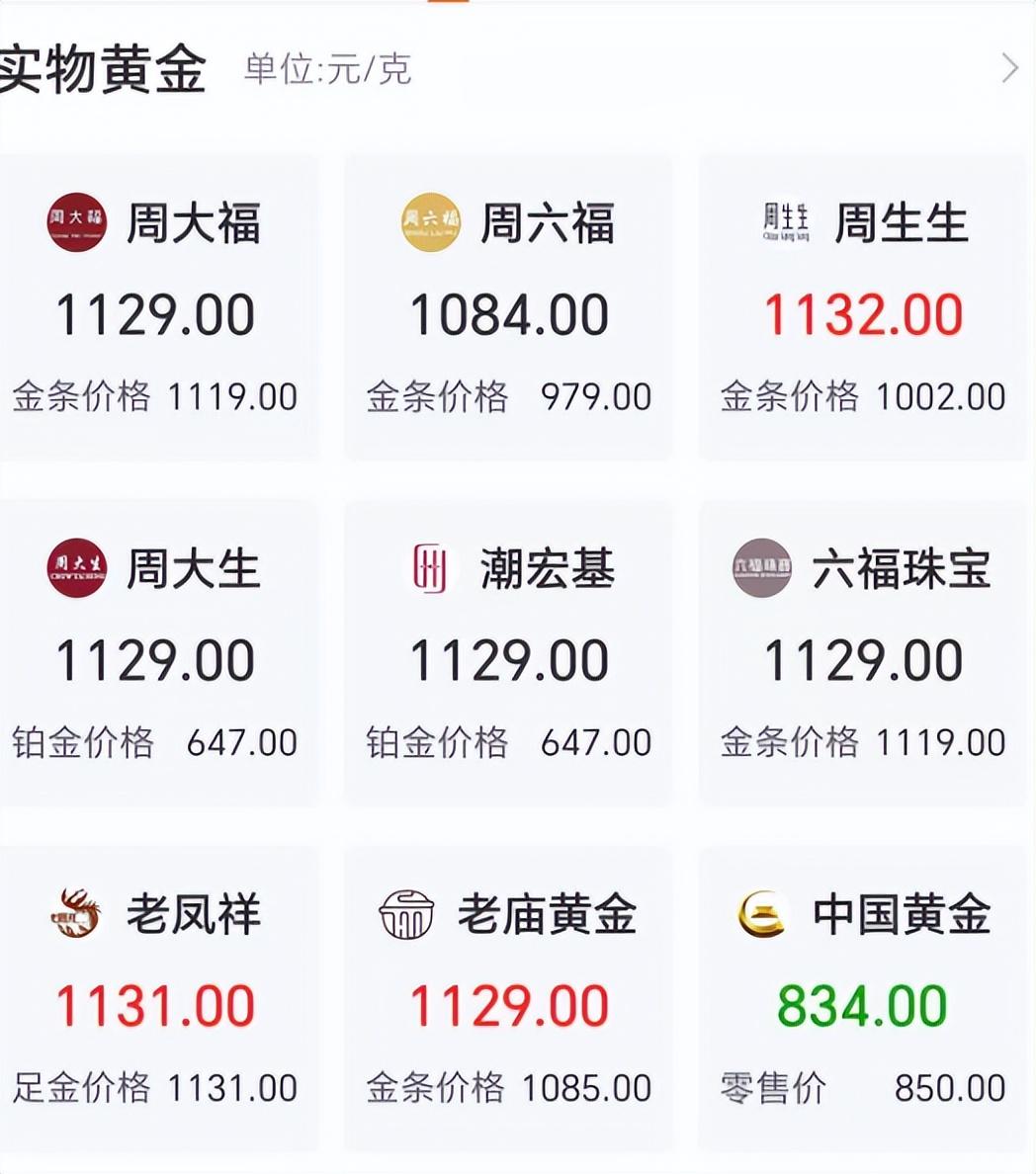 国庆假期,国内金饰价格突破1100元/克