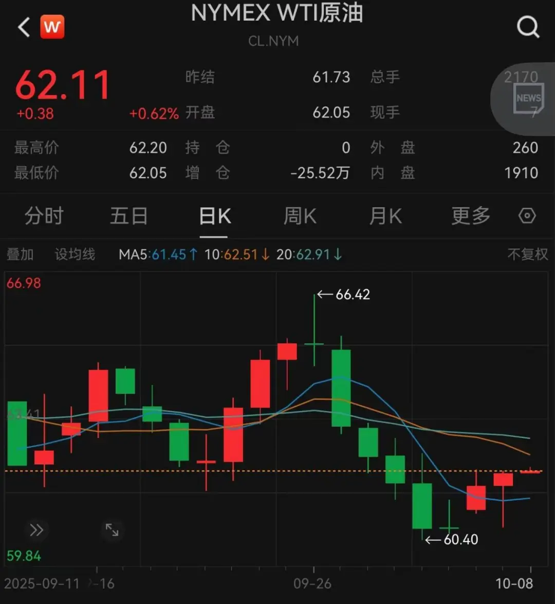 国际油价收平。周二,NYMEX WTI原油指数上涨约0.6%。8月和9月,国际油价连续两个月走弱,市场担忧供应过剩,美洲地区仍不断提高产量。