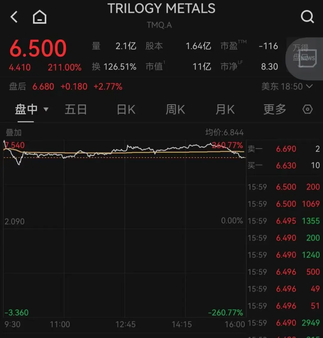 矿业公司Trilogy Metals暴涨211%,美股稀土板块受提振。