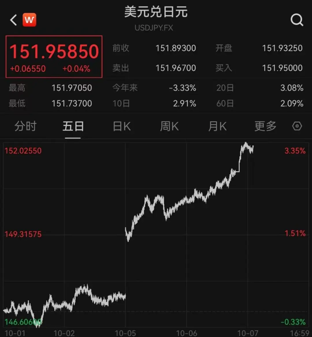 周二,国际金价一度跳水,COMEX黄金跌近3980美元/盎司。金价跳水同时,美元指数走强,美元兑日元涨势扩大,逼近152关口。