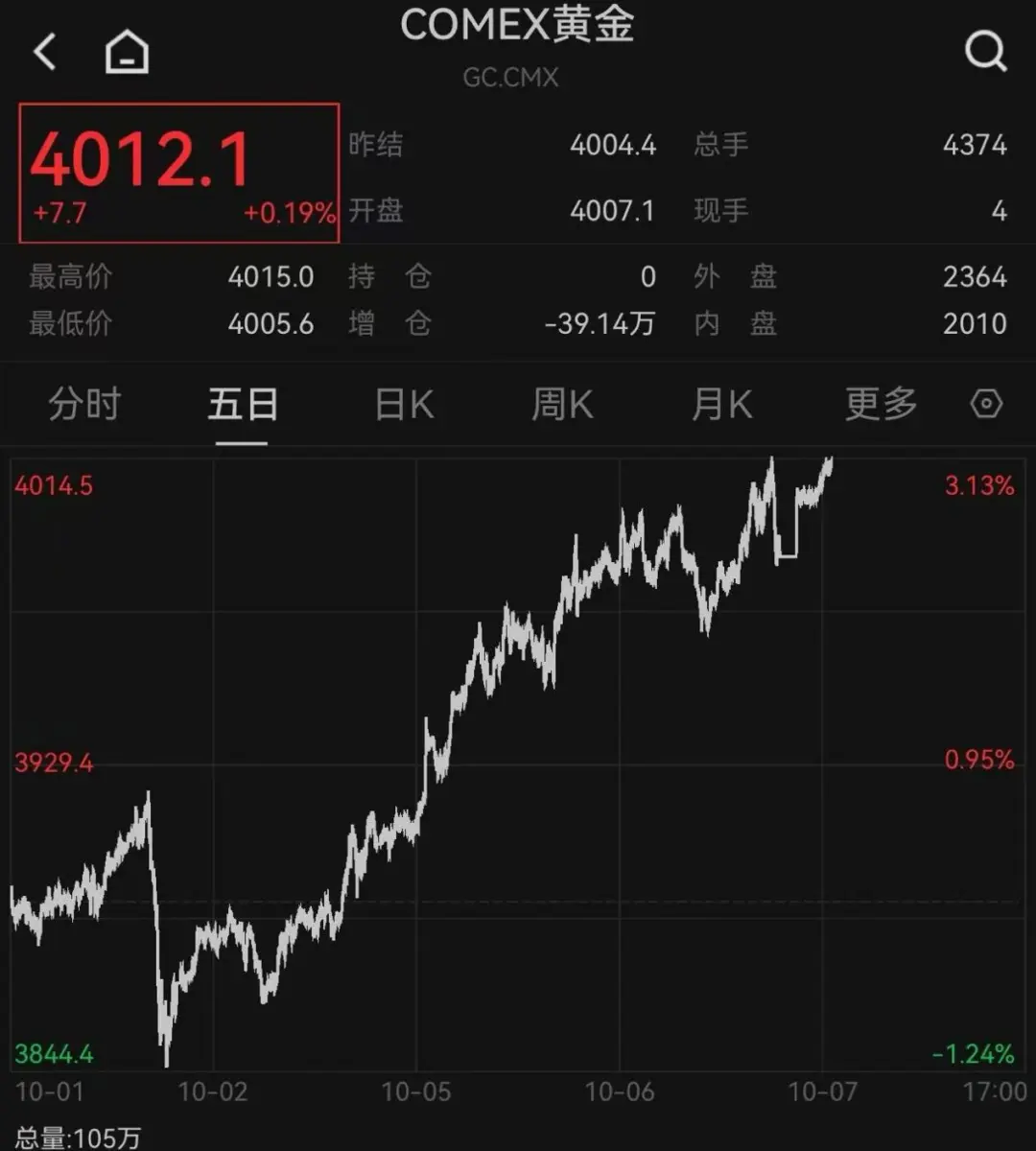 截至发稿,COMEX黄金指数再度反弹至4000美元/盎司之上。