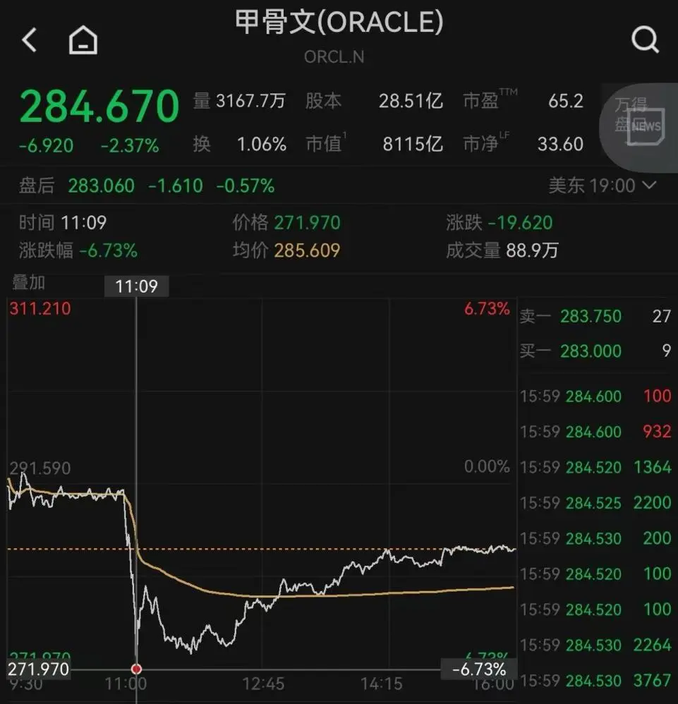 受上述消息影响,甲骨文盘中一度下跌近7%,最终收跌2.37%。