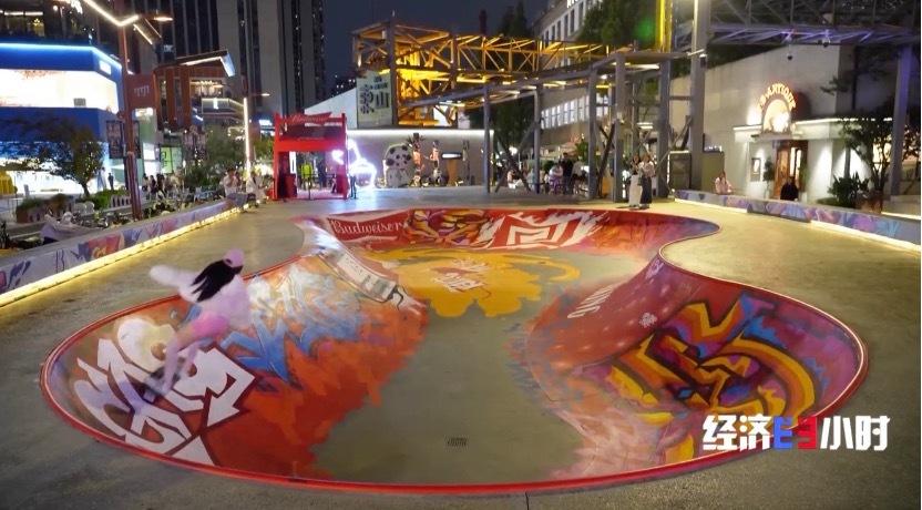 除了攀岩,一家新近启用的滑板运动场通过“体育产业+体验业态”的创新融合,把滑板、平衡车、小轮车、攀冰等众多小众运动,带到成都的市民生活中。