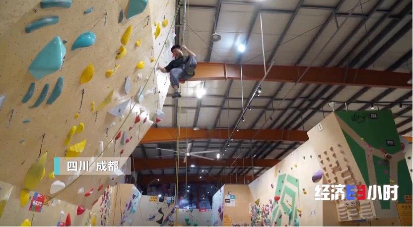 成都一家总面积超过1500平方米的攀岩馆,最多可以满足70多人同时攀岩。现在这里每天营业时间超过10个小时,今年以来几乎每天都是满员的状态,周末有时甚至需要排队。