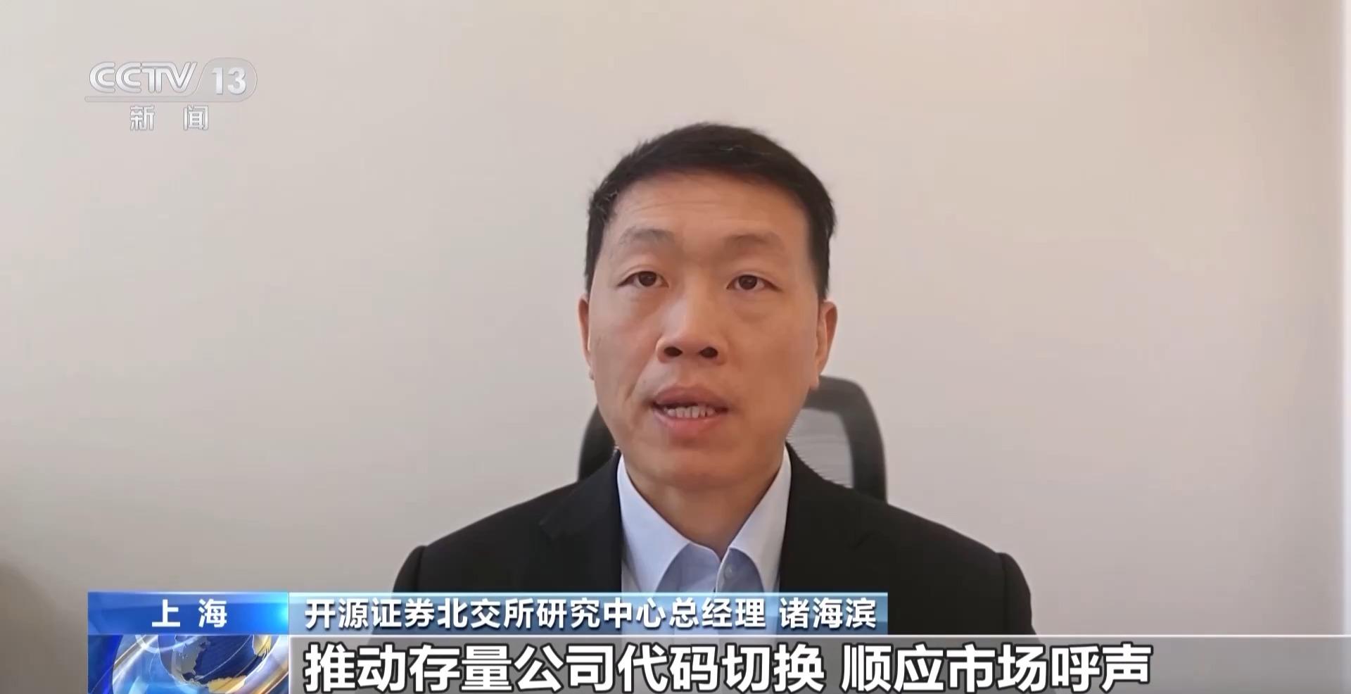 开源证券北交所研究中心总经理 诸海滨:推动存量公司代码切换,顺应市场呼声,有利于提高板块认同感,让投资者认识到北交所上市企业与新三板挂牌企业的属性差异。从长远看,可与其他改革举措发挥政策合力,助推北交所打造服务创新型中小企业主阵地。