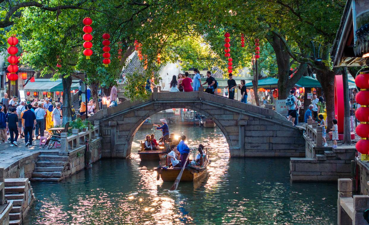 10月6日,游客在江苏省苏州市吴江区同里古镇游览(无人机照片)。新华社发(周社根摄) 不仅如此,假期里不少游客选择在同一城市停留,美团旅行数据显示,花7至8天进行深度体验的游客数量较去年同期增长50%以上,沈阳洗浴、扬州三把刀、成都茶馆、大理扎染等富有城市特色的体验活动成为打卡项目。