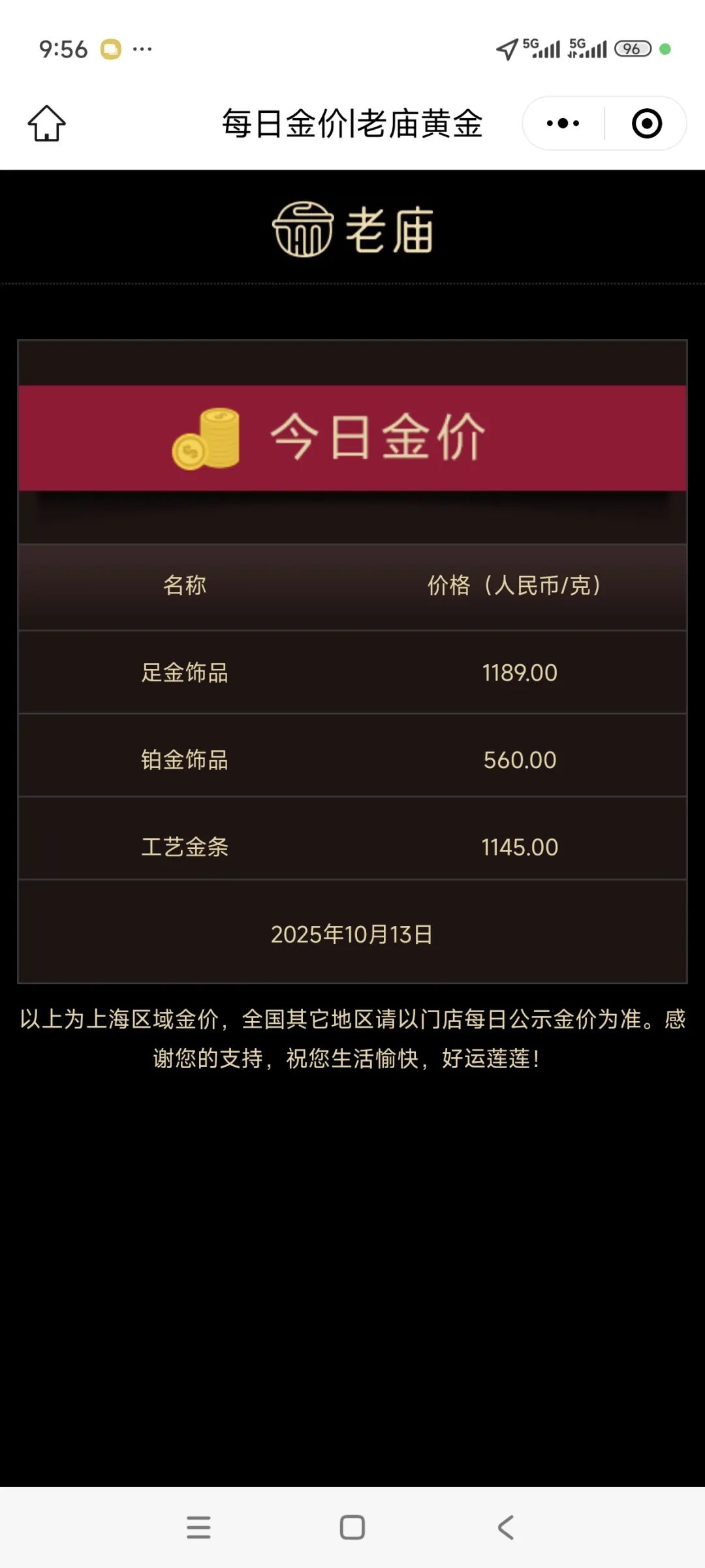 国内首饰金价方面,多个品牌价格随之小幅微涨。周大福金饰价格1190元/克,较前一日1180元/克的价格上涨10元/克;老庙黄金足金饰品标价1189元/克,较前一日1183元/克的价格上涨6元/克。老凤祥足金饰品标价1182元/克,克价较昨天上涨2元;