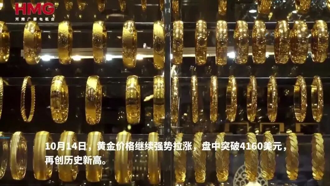 10月14日,现货黄金强势突破4160美元每盎司,再创历史新高。年内累计上涨1500美元,年涨幅超58%。四大行投资金条价格也继续跟涨。