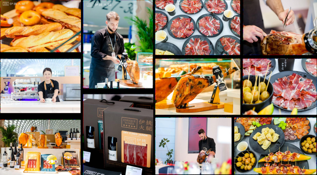 西班牙伊比利亚火腿:国民品牌Enrique Tomás带来的“肉中黄金”,精选100%橡树果喂养的猪只,只取火腿最精华部位,现场现切现尝,咸香回甘的油脂在舌尖化开,搭配红酒堪称绝配。