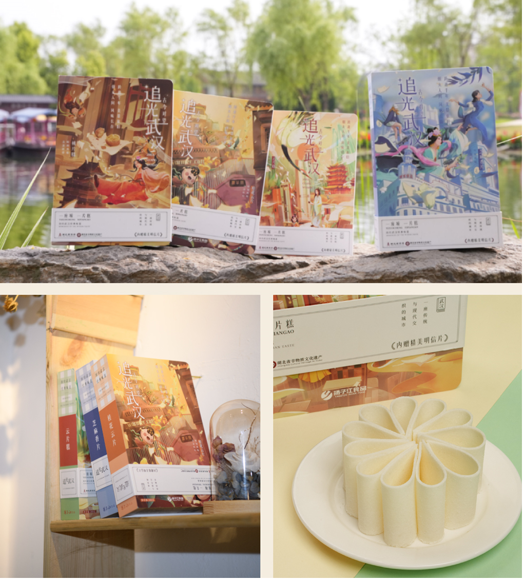 扬子江食品文创冰淇淋已远销全球6大地区,樱花系列美食、追光武汉系列片膏等非遗汉点,将武汉风情融入舌尖美味,170多岁的文创港饼用武汉话讲述老武汉的烟火故事。