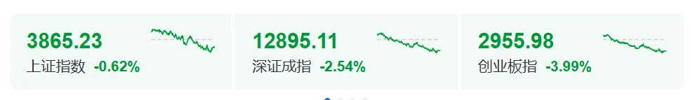 A股方面,创业板指午后跌超4%。截至收盘,沪指跌0.62%,深成指跌2.54%,创业板指跌3.99%。
