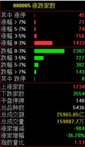 市场共1734只个股上涨,3554只个股下跌。
