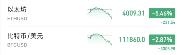 加密货币市场上,比特币、以太坊也大跌。