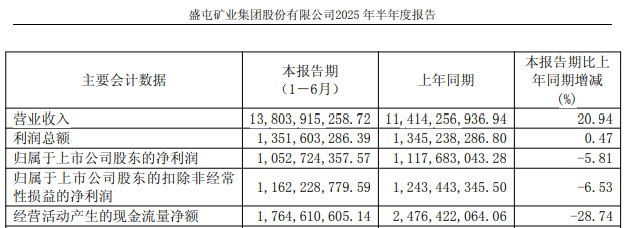 2025年上半年,盛屯矿业的营业收入同比增长20.94%至138.04亿元,归母净利润同比下降5.81%至10.53亿元。