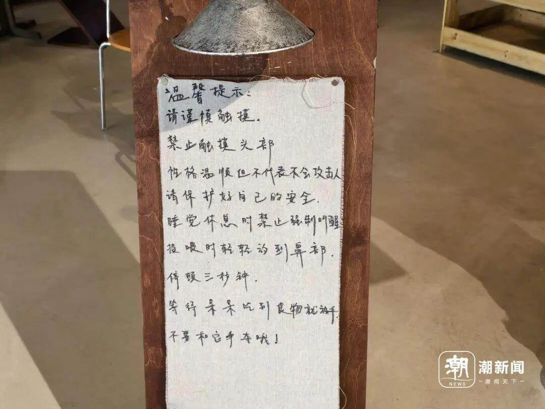 树懒咖啡店有一块提示牌:“请谨慎触摸,禁止触摸头部,性格温顺但不代表不会攻击人。”