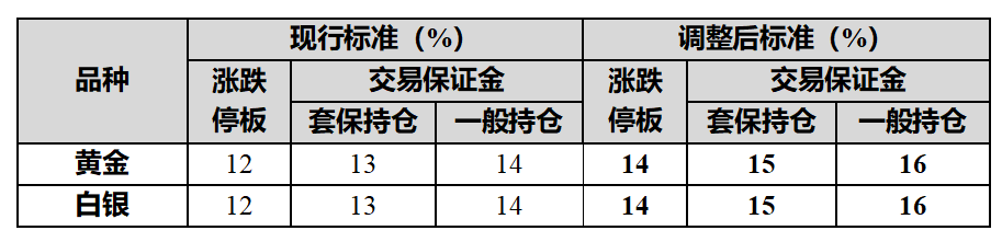 上期所调整黄金期货合约涨跌停板幅度