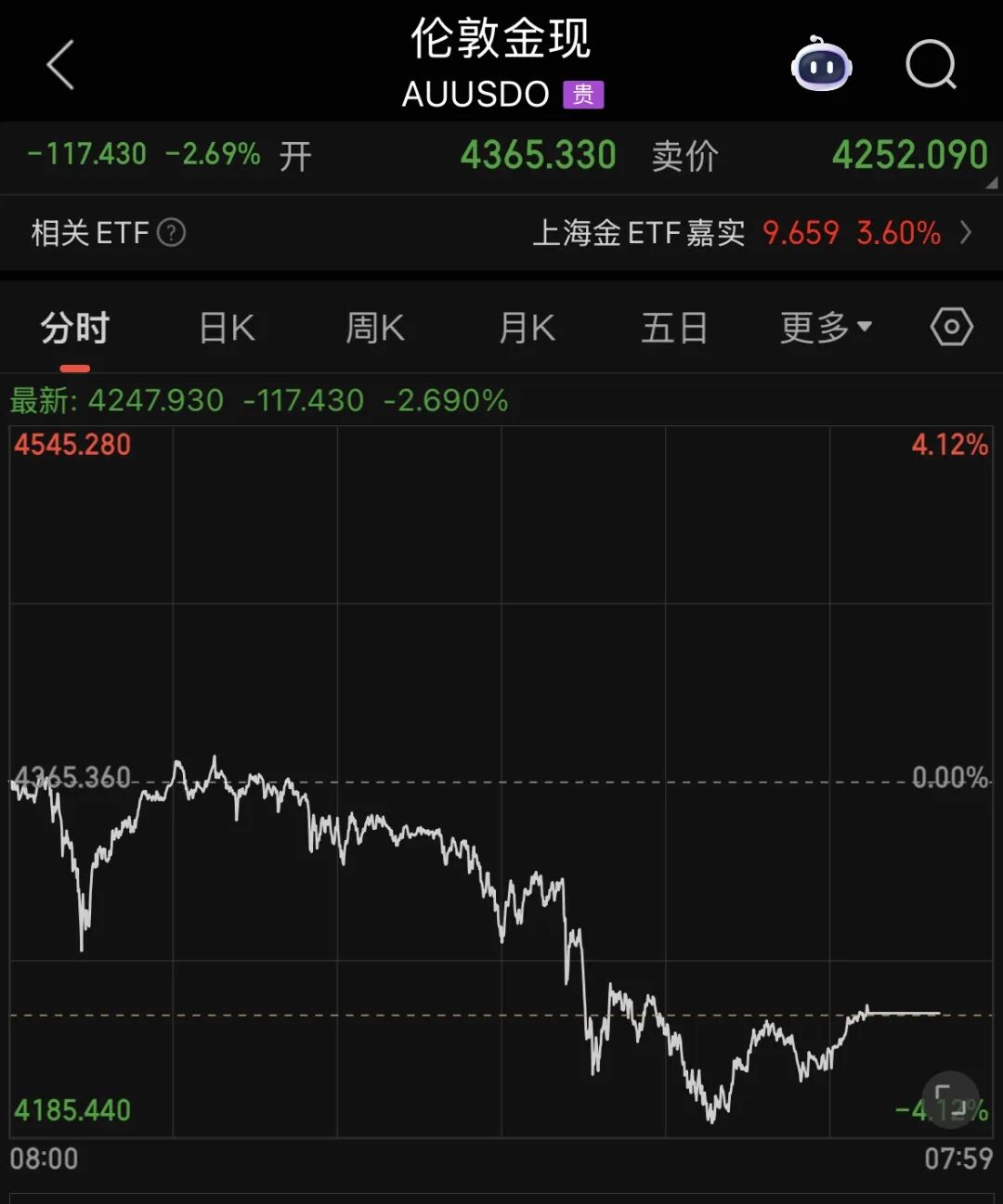 据人民财讯,国际金银快速下挫,现货黄金盘中跌超2%。