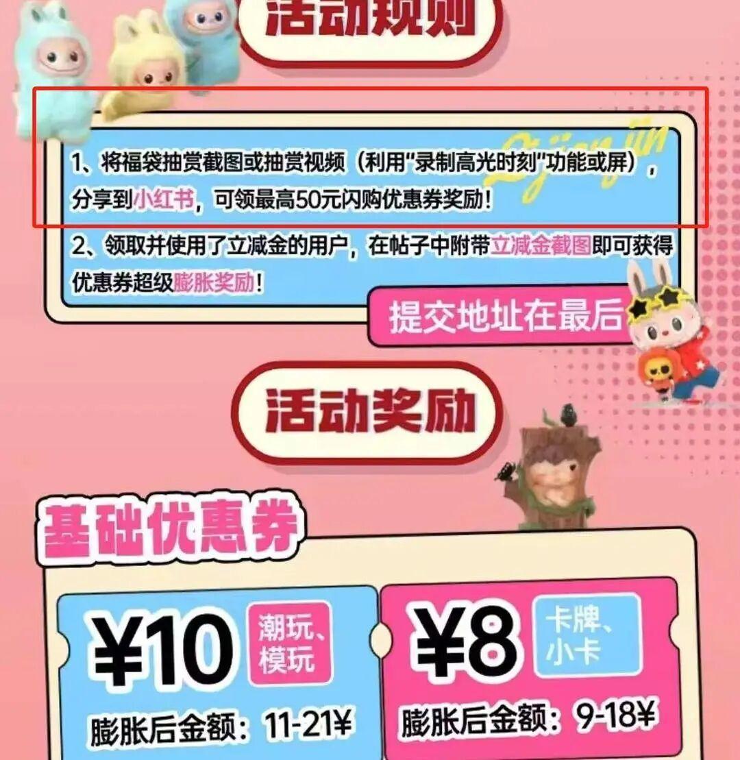此外,蓝女士还提到,该潮玩APP设置有一种奖励机制:“平台鼓励买家把抽中大奖的福袋录屏发社交平台,高赞能获奖励,就好像在引导大家进入这个变相的‘赌局’”。在意识到自己的“赌徒心理”越来越严重后,蓝女士决定抽身,如今她已经不再参与福袋活动,刷到相关帖子时她还会主动在评论区提醒其他玩家。