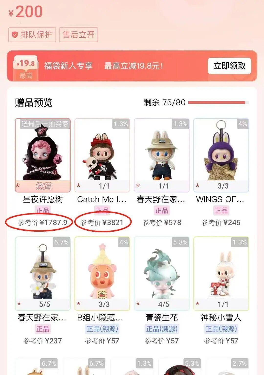 “我第一次买福袋单纯是为了买到心仪的那款,但抽了5次才买到。这时候我花的钱已经远远超出市场的黄牛价,其实非常不值。”蓝女士告诉记者,如果抽到了不想要的奖品,也可以通过平台再转卖给其他人,但回收价往往低于市场价,且最终大多又流回“车主”手中,重新再组成福袋继续售卖。