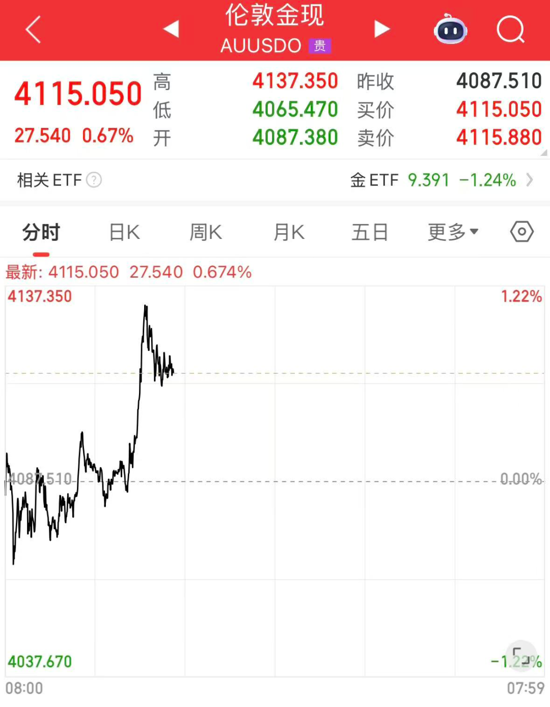 截至下午3:30,伦敦金现最新报价4115.05美元/盎司。