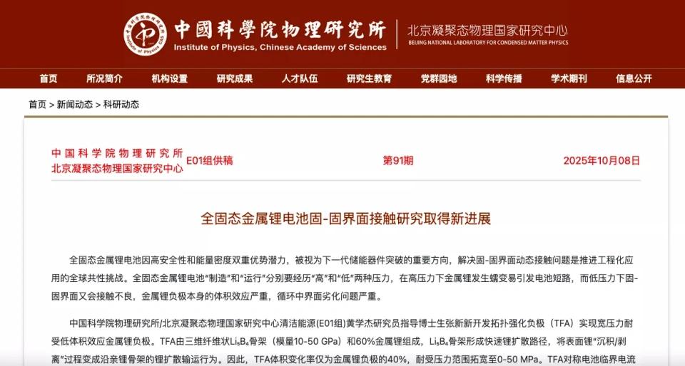 除了电池企业,相关研究所及研发机构也在发力。就在本月,据中国科学院物理研究所官网科研动态信息,由该所研究员黄学杰团队联合华中科技大学、中国科学院宁波材料技术与工程研究所等组成的研究团队开发出一种阴离子调控技术,解决了全固态金属锂电池中电解质和锂电极之间难以紧密接触的难题。有望解决固固界面的接触难题,彻底打通固态电池的续航瓶颈。