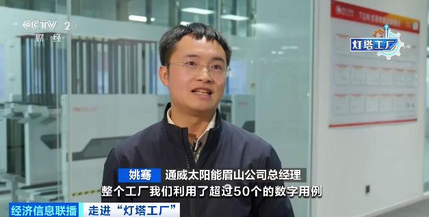 通威太阳能眉山公司总经理 姚骞:整个工厂我们利用了超过50个数字用例,让每一座工厂都具备自感知、自优化的能力。最终成为全球光伏行业里面唯一的“灯塔工厂”。我们希望在2030年之前,光伏度电成本在现有基础上再降低30%。
