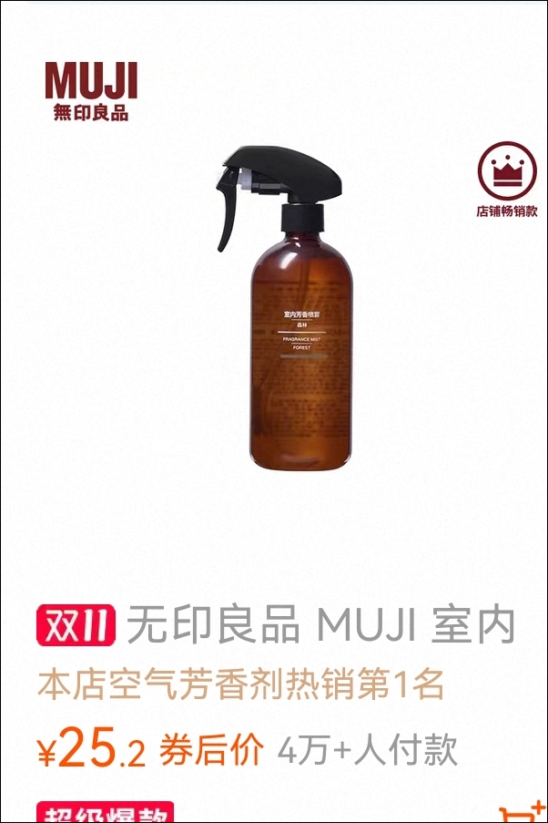 橙柿互动记者查询MUJI国内官方旗舰店,发现同款在售。并且是店内香氛热销第一名。售价25.2元。