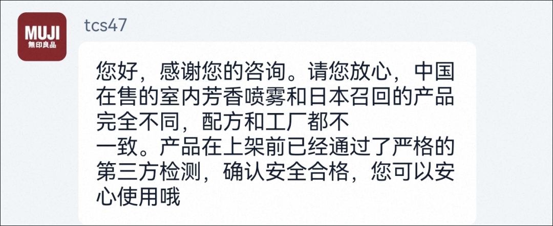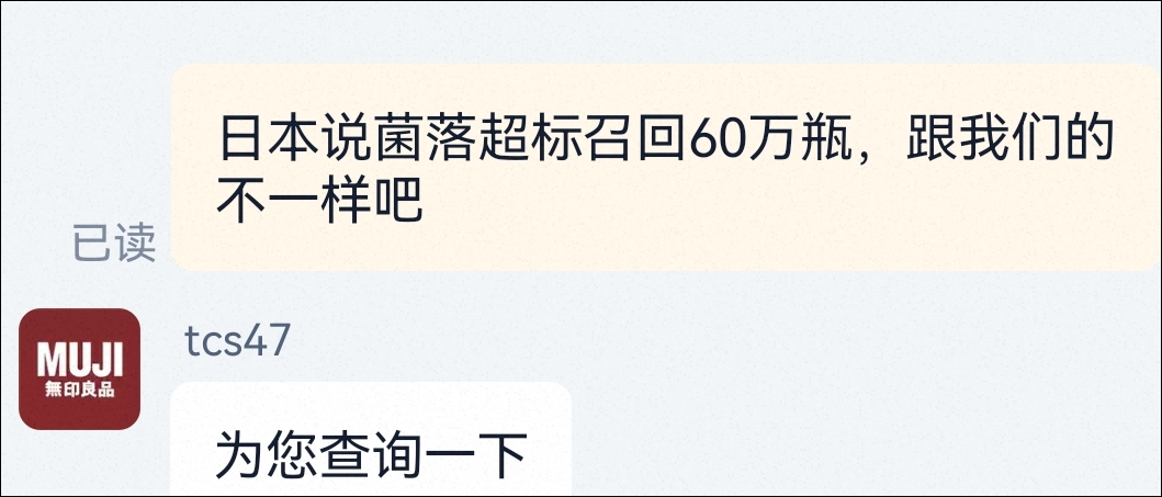 咨询官方客服是否和日本召回款同批次,客服回应:批次不同,可放心购买。