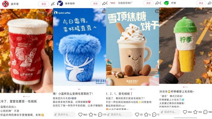 这波热潮首先和天气有关,10月全国多地气温骤降,“温暖感”成为消费场景的核心诉求。茶饮品牌本就迎来热饮销售旺季,茶百道“超厚芋泥”系列回归首日售近20万杯,书亦烧仙草“草莓奶云麻薯”48小时销量破30万杯。而毛绒元素自带的柔软、温暖属性,与热饮的“暖胃”形成完美呼应,从视觉到味觉构建起双重温暖体验。