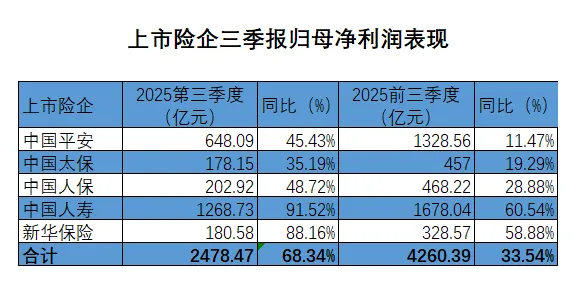 权益市场的“慢牛”行情让上市险企的三季报归母净利润再次创下历史新高。