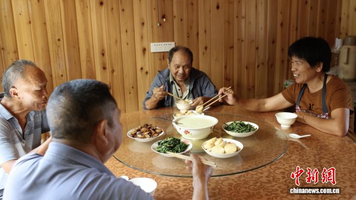 每天11时许,在景宁县东坑镇新和村,村民雷庆荣家的厨房里总会准时飘出饭菜香。不一会儿,由传统柴火灶烹饪的四菜一汤便被端上餐桌,他和妻子以及同村的两位老人共进午餐,席间不时聊些家长里短,传出阵阵欢笑声。