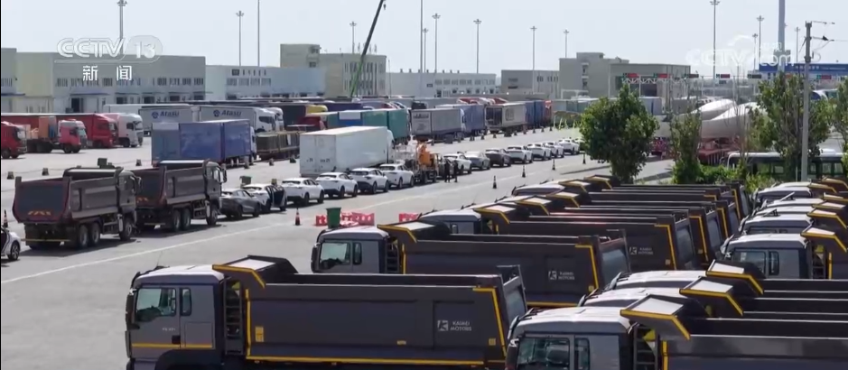 霍尔果斯口岸管理局副局长张磊:在交通运输部门、海关的大力支持之下,突破了商品车可以以一辆头车带五辆的模式,可以从货场直接开到通关现场。