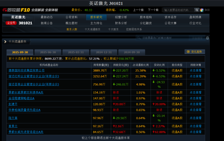 杭州的另一位“牛散”赵建平则同样延续了对科技股的喜爱,三季度大举加仓英诺激光。记者翻查资料发现,赵建平三季度加仓英诺激光20万股,总持仓来到120万股,位列公司第六大流通股东。
