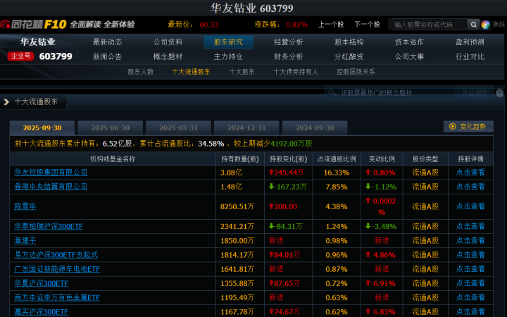 另一个比较大的变化是,第三季度末,章建平新进浙江有色金属行业龙头华友钴业,以1850万股的持股量入列公司第五大流通股东,这也是“章盟主”唯二重仓的个股。