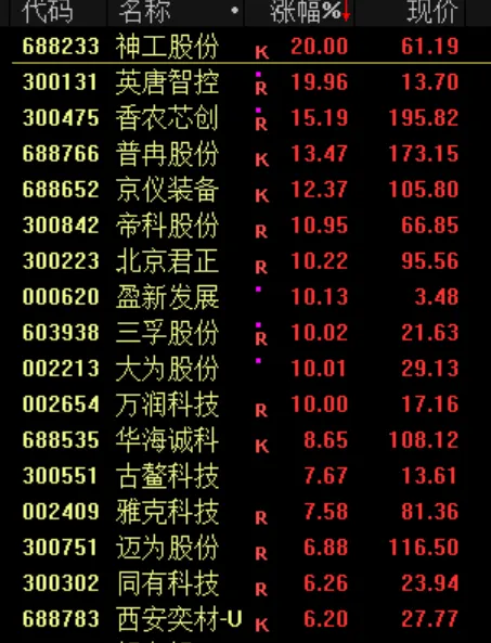 存储芯片板块反复活跃,大为股份、万润科技等涨停。