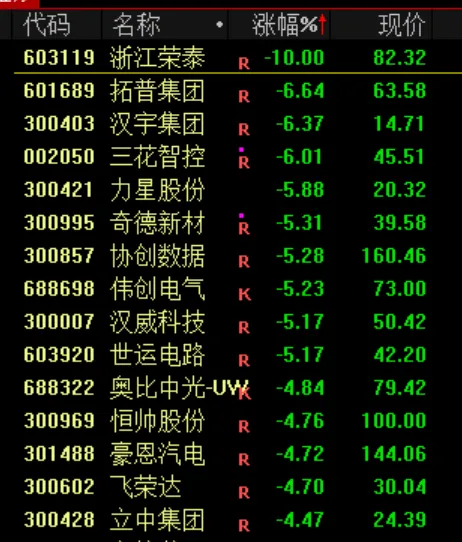 下跌方面,机器人概念股调整,浙江荣泰跌停。