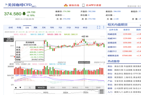 近期,全球市场不仅见证了黄金价格的飙升,连咖啡豆也加入了涨价的行列。自10月份以来,美国咖啡期货在每磅370美分以上的高位徘徊。