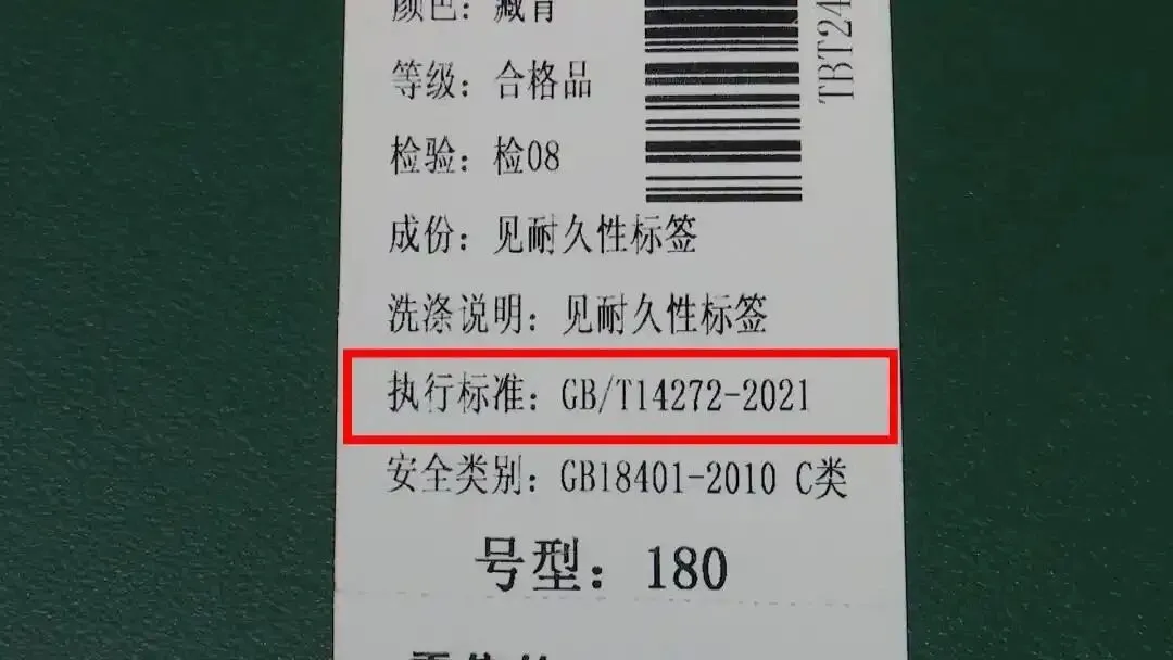 1. 看执行标准:认准吊牌或水洗标上是否标注GB/T 14272-2021。这是新国标的“身份证”。