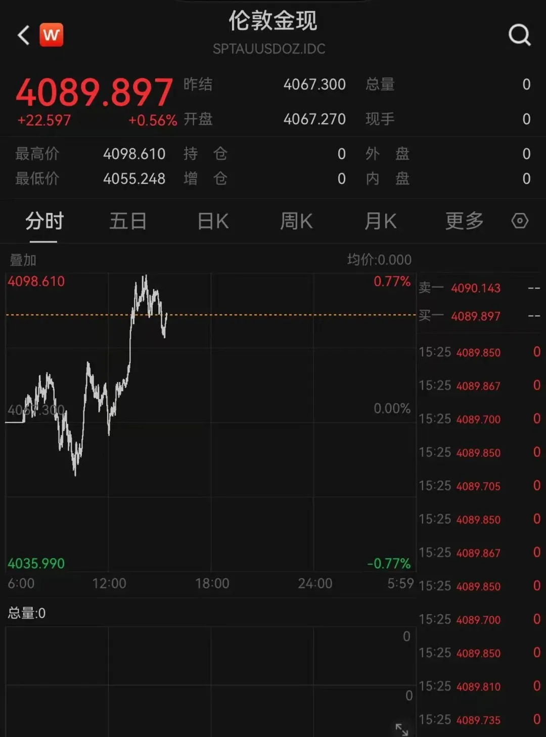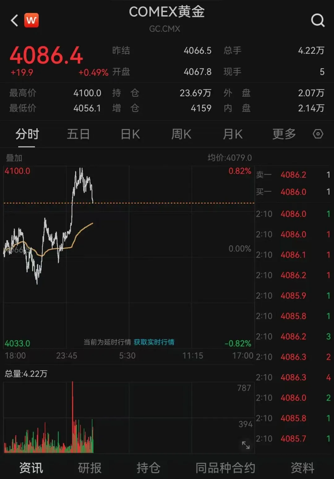 COMEX黄金同样一度跌破4000美元/盎司,最大跌幅近1.9%。但随后也出现止跌回升,收至4086.4美元/盎司。