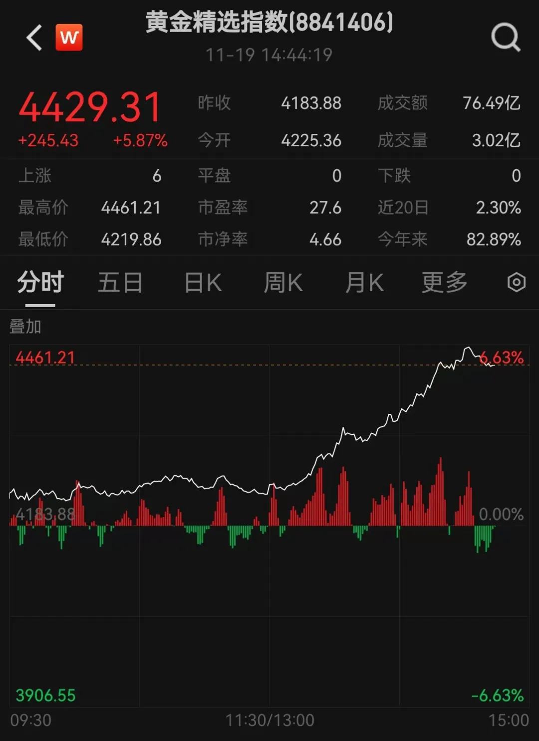 11月19日,黄金股尾盘持续走强,中金黄金触及涨停。