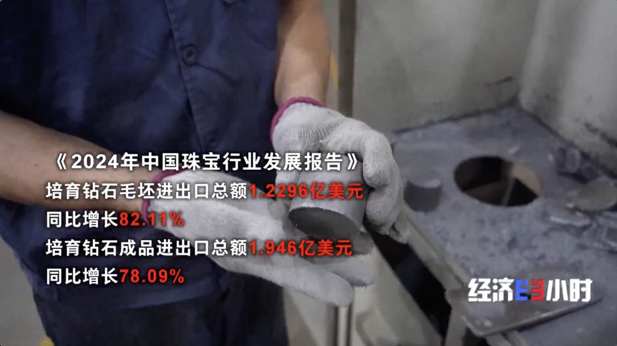 批量快速生产出的培育钻石不仅占据了国内的市场,且早已奔赴海外市场。2024年我国培育钻石毛坯进出口总额为1.2296 亿美元,同比增长82.11%;培育钻石成品进出口总额为 1.946 亿美元,同比增长78.09%。