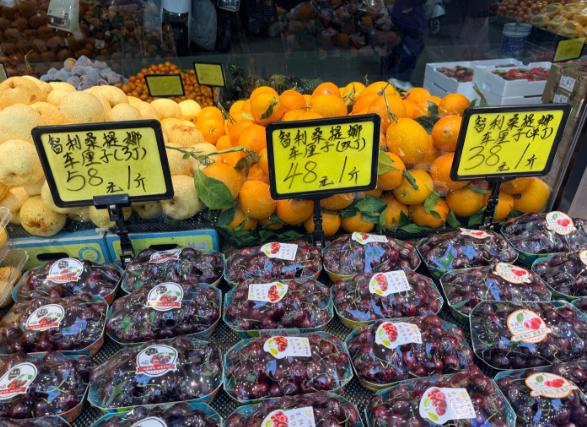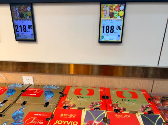 在其中一家水果店内,老板向记者介绍道:“现在店里的车厘子都是海运的,我们现在在搞活动,1J18.8元/斤,3J35元/斤。”