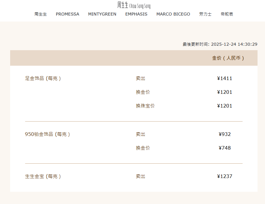 周生生官网今日金价截图