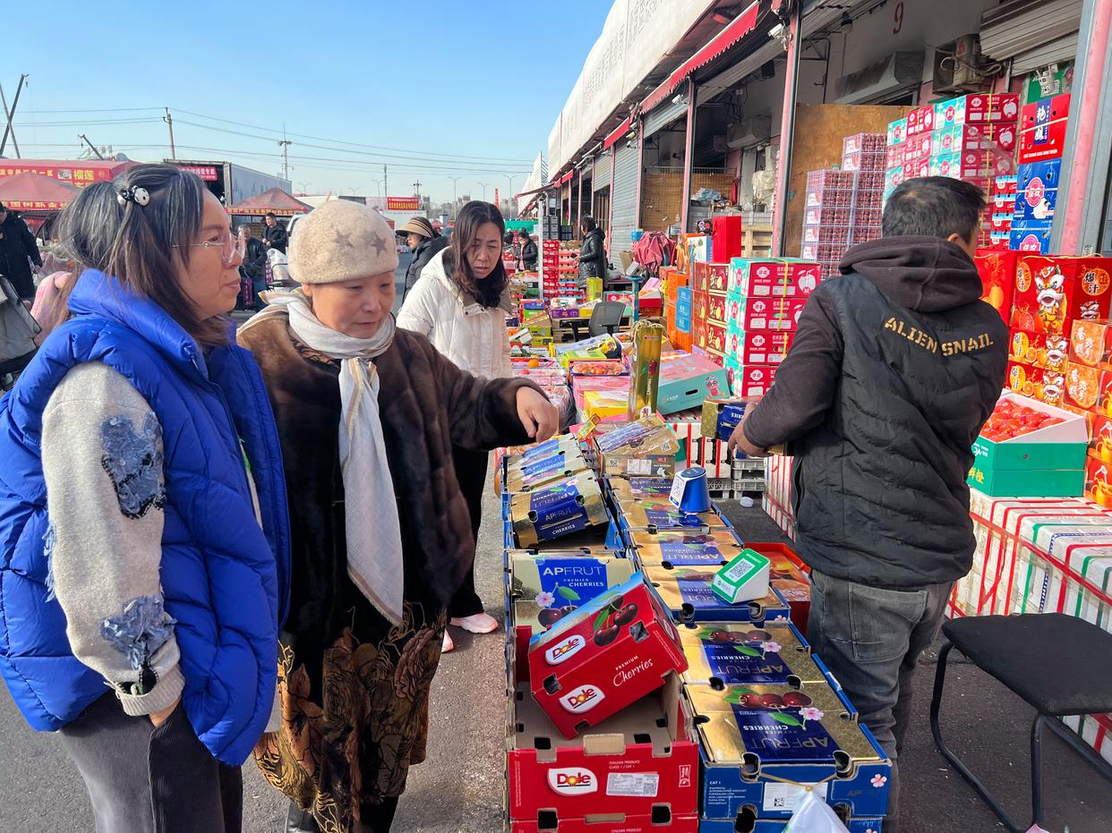 她告诉记者,今年车厘子大量到货的时间比往年有所提前,且到货量也比往年更大。进入12月下旬以来,车厘子价格环比11月刚上市时又迎来一波“跳水”,目前的价格已较往年同期下降约15%至20%。“以前从没见过这个价,今年实现‘车厘子自由’了。”摊位上,一对年轻夫妻笑着买走一箱。