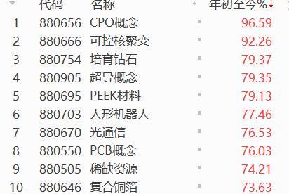 如果进一步细分,“科技创新”的烙印更明显。从概念板块来看,年度涨幅前十的分别为CPO概念(96.59%)、可控核聚变(92.26%)、培育钻石(79.37%)、超导概念(79.35%)、PEEK材料(79.13%)、人形机器人(77.46%)、光通信(76.53%)、PCB概念(76.03%)、稀缺资源(74.21%)、复合铜箔(73.63%)。这些细分的概念基本上是股民朋友们津津乐道的“新科技”“新能源”赛道。